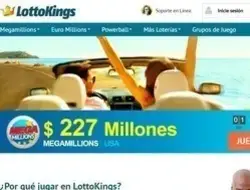 LottoKings es una sensacional plataforma que te permite acceder a las mejores y más sustanciosas loterías alrededor del mundo. Te ofrece inmensas ventajas porque con el costo del registro cubres tus apuestas, así que invertirás más que nunca en la opción de ganar los sorteos más millonarios que existen en el planeta. Tienes la sección de Megamillions, con un premio de hasta 227 millones de dólares. También puedes disfrutar de PowerBall, con 80 millones de dólares. Tienes Super Lotto, con 12 millones de dólares. Y loterías en todas las latitudes del mundo, como el SuperEnalotto, con 6.6 millones de libras, EuroMillions, con 190 millones de euros, Lotto, con 17 millones de euros, UK Lotto, con 10.9 millones de libras, EuroJackpot, con 10 millones de euros y Oz Lotto, con 15 millones de dólares australianos. Pagas siempre menos en la apuesta porque tienes el gran Código Promocional LottoKings.